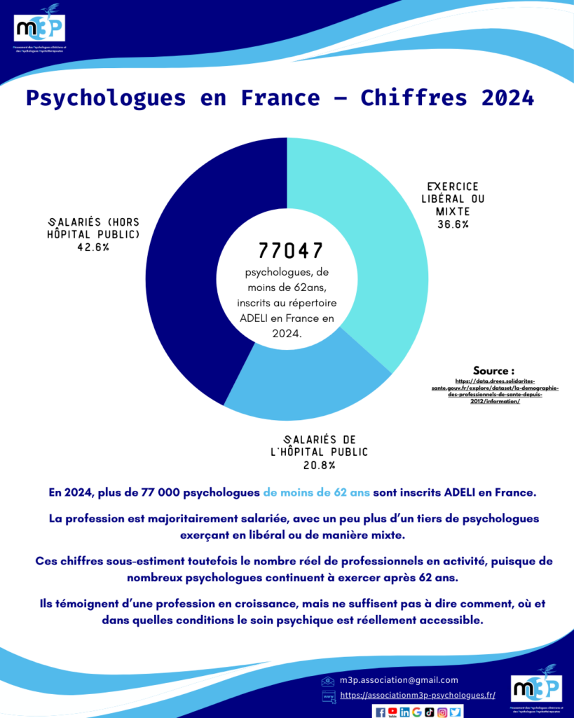 De nombreux psychologues continuent à exercer après 62 ans, notamment en libéral ou dans des formes d’activité partielle, mais ils ne sont pas comptabilisés dans ces données.